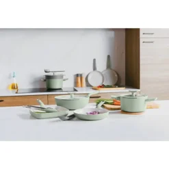 Collezione di KÜCHENPROFI PROVENCE. La serie è ideale per brasare, cuocere a fuoco lento, cuocere, arrostire e friggere. La ghisa assorbe rapidamente il calore e lo distribuisce in modo ottimale. In questo modo è possibile ridurre l’ energia in breve tempo: ciò consente di risparmiare elettricità e mantenere l’aroma del cibo. Le pentole PROVENCE sono adatte a tutti i tipi di stufe, compresa l’induzione, le manopole sono resistenti al forno fino a 250 ° C.
