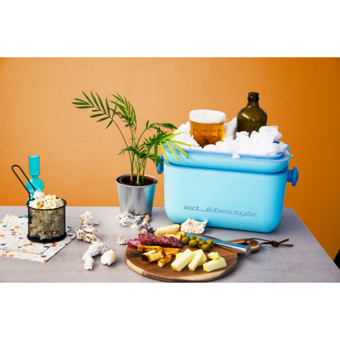 Cooler bag rigida 12L. Adatta per conservare al fresco cibo e bevande. Dotata di manico rigido e tracolla regolabile intercambiabili tra loro in base alle tue esigenze. Il suo coperchio può essere anche utilizzato come vassoio portabibite. Disponibile in 3 varianti di colore: azzurro, beige, rosa.