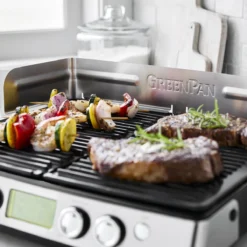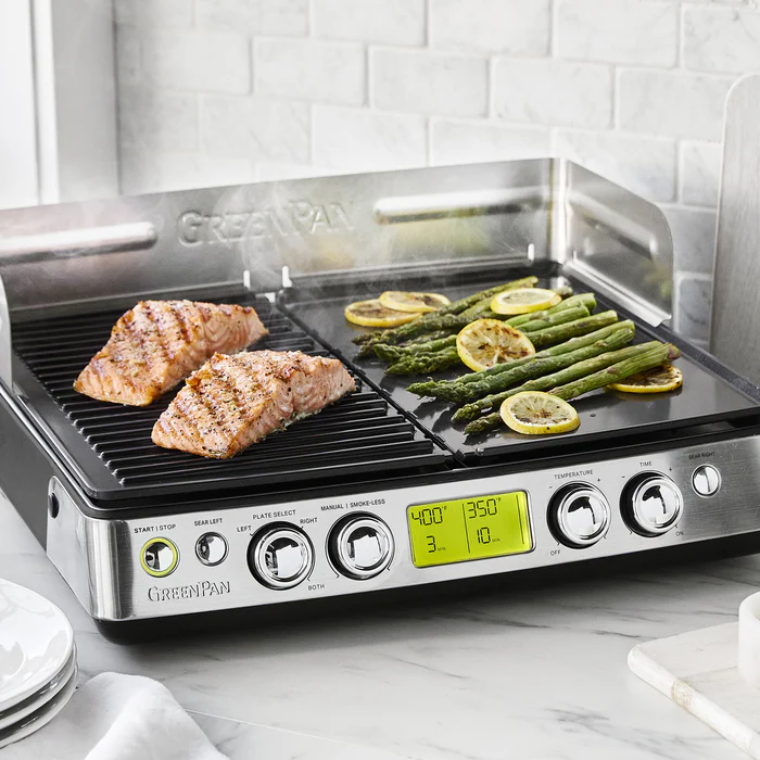 Le impostazioni per carne di manzo, pollame, pesce e maiale regolano automaticamente la temperatura per ridurre il fumo senza compromettere il sapore.