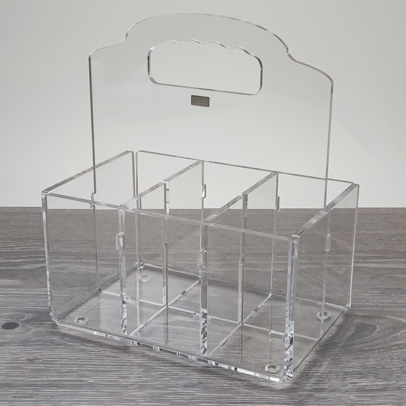 Porta posate a sei scomparti con manico centrale per un trasporto comodo ed in equilibrio adatto sia ad un uso quotidiano sulle tavole, sia per feste e pic-nic.