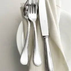 Tavola completa per 6 persone. Comprende 24 posate: 6 forchette tavola, 6 cucchiai tavola, 6 coltelli tavola e 6 cucchiaini.