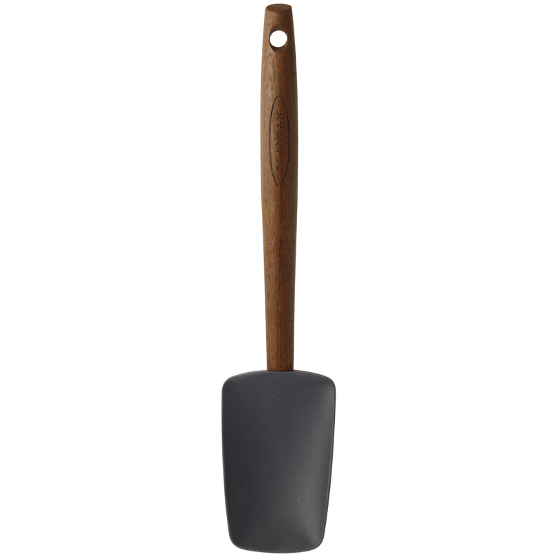 I loro manici sono realizzati in frassino carbonizzato di colore caldo e dorato. Le loro teste rimovibili, rinforzate con acciaio, sono realizzate in silicone grigio scuro opaco, che è durevole, resistente alle alte temperature (fino a +230°C) e lavabile in lavastoviglie. La testa rimovibile facilita la pulizia.