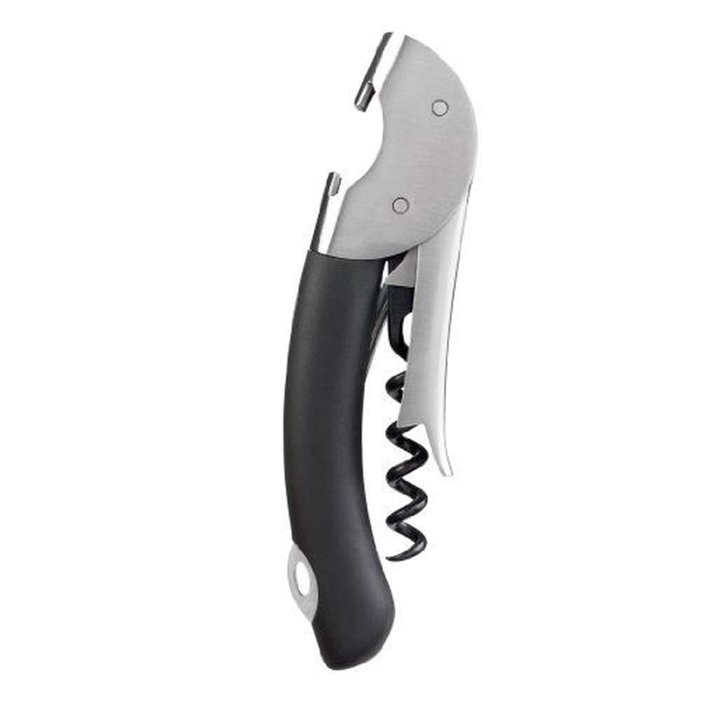 Cavatappi da cameriere a doppia leva con forma sottile e compatta per un utilizzo semplice e comodo.