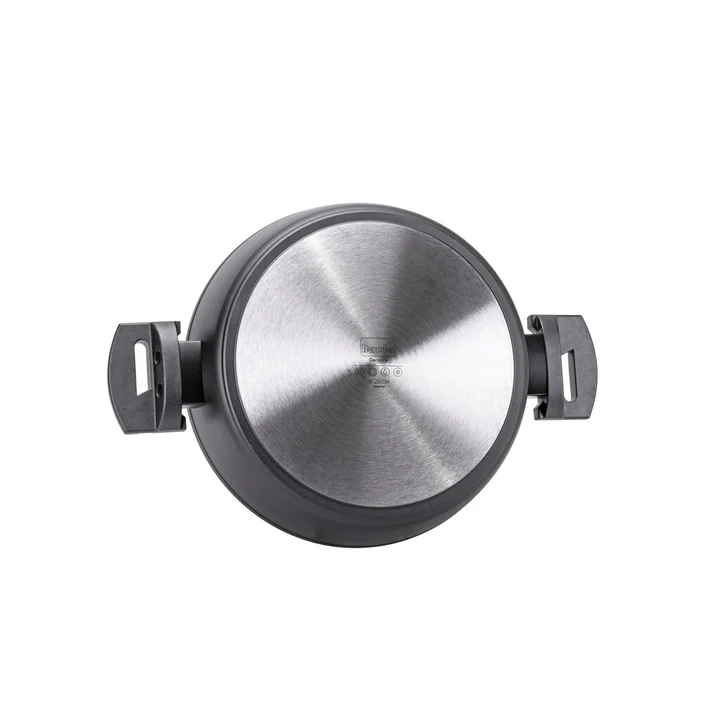 Articolo realizzato in alluminio forgiato con innovativo rivestimento naturale opaco privo di PFAS. Compatibile con tutti i piani cottura, inclusa l’induzione.